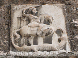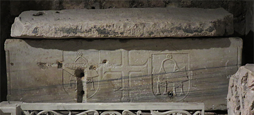 | ↑「栄光の玉座に座るキリストの石棺」(Sarcophage du Christ trônant) | ↑ 「オランジュ(オラニエ)家の紋章のある石棺」 (Sarcophage aux armes de la Maison d'Orange)12世紀 |